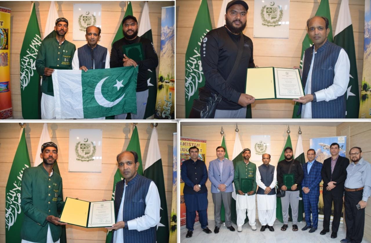 وثمن القنصل العام جهودهما في تعزيز الصورة باكستان الناعمة وتعزيز الصداقة بين باكستان والمملكة العربية السعودية و منحهما شهادتي تقدير على إنجازاتهما الرائعة وقال إن التزامهم باستكشاف العالم من خلال وسائل غير تقليدية هو شهادة على شغفهم بالمغامرة وحبهم للطبيعة.