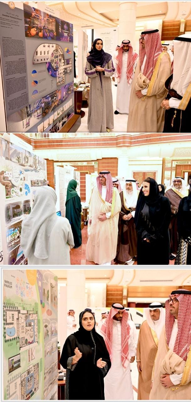 وتجوّل سموّه في المعرض الذي يضم 18 مشروعًا في التصميم الداخلي، من ابتكار وتنفيذ 18 طالبة، تنوعت أعمالهن في مختلف التصاميم الداخلية.