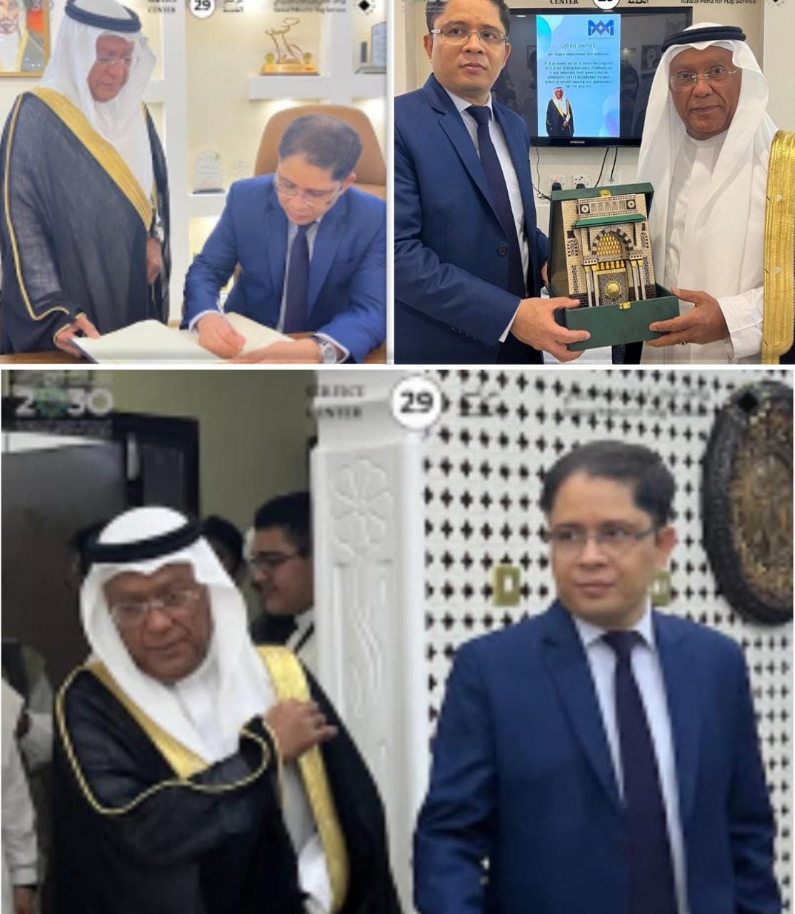 ومساعده الأستاذ ماجد دانش -وكان في استقبالهم رئيس المركز 29 لحجاج الهند – الأستاذ وليد محمد عزيزالرحمن – الأستاذ عبداللطيف عزيزالرحمن –