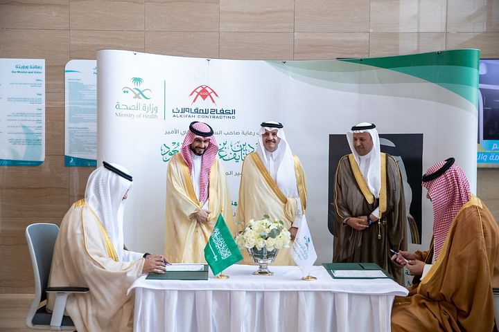 ووقع اتفاقية استئناف الاعمال بمشروع مستشفى الخبر المركزي الدكتور إبراهيم الطريري والمهندس عبدالعزيز العفالق .