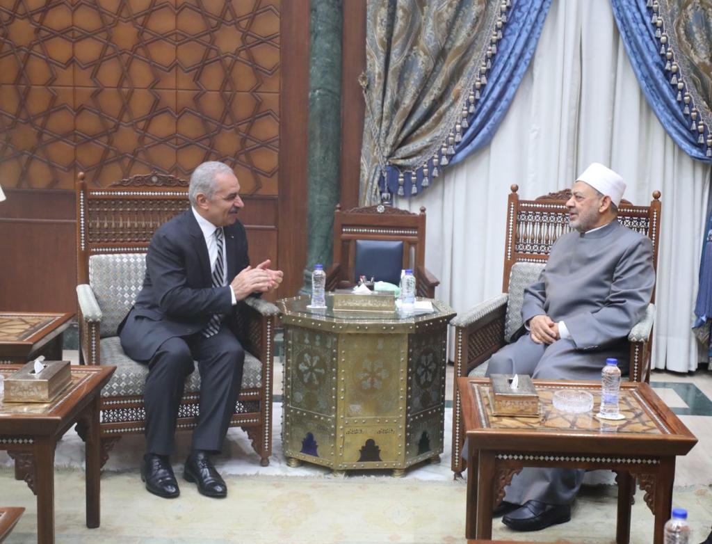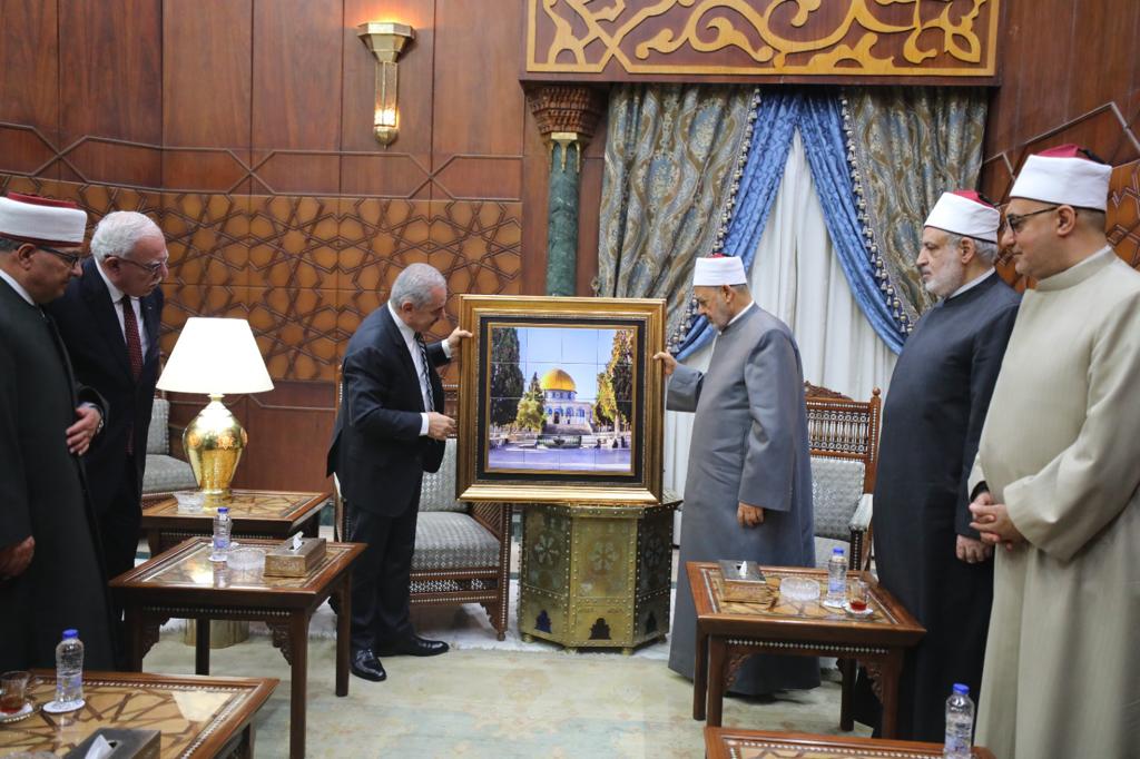 من جانبه، أعرب رئيس الوزراء الفلسطيني عن تقديره لما يقوم به شيخ الأزهر من جهود كبيرة في الدفاع عن القضية الفلسطينية ودعم الشعب الفلسطيني، مصرحا “ندرك أهمية صوت الأزهر المسموع في العالم كله، هذا الصرح العظيم الذي يشكل معاني وقيما تعليمية ودعوية ودينية، ونعلم علم اليقين بأن صوتكم مسموع وإحساسكم بأبنائكم وإخوانكم في فلسطين موصول، ونقدر حرصكم على متابعة الأوضاع في فلسطين وموقفكم المنصف والذي يظهر بشكل يومي تجاه قضيتكم الفلسطينية”.