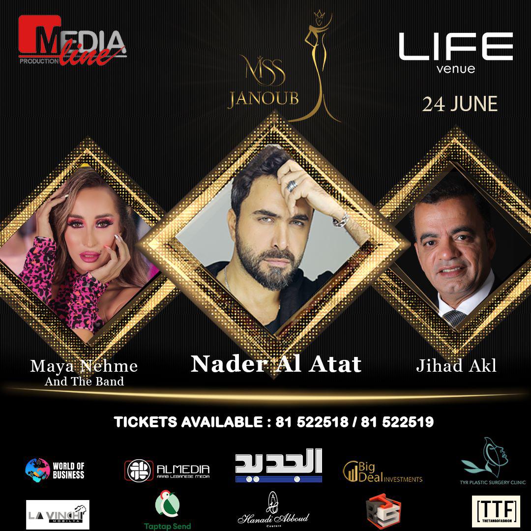 الحفل سيكون بتاريخ ٢٤ حزيران وسيحييه الفنان نادر الاتات اضافة الى ساحر الكنجا جهاد عقل والفنانة مايا نعمة وفرقتها حيث ستقدم لوحات غنائية راقصة مميزة ، جدير ذكره بأن هذا الحدث الجمالي لعام ٢٠٢٣ سينقل عبر شاشة الجديد