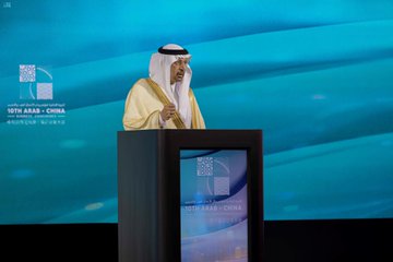 وأشار إلى أنه خلال العقود القليلة الماضية، نمت علاقاتنا بشكل وثيق مع الصين الصديقة، بصفتنا شريكًا رئيسًا للصين في العالم العربي وبوابة له، ولكوننا الاقتصاد الأكبر في الشرق الأوسط والأسرع نموًا في العالم خلال العام الماضي، فنحن اليوم، ملتزمون بالعمل كجسر يربط العالم العربي بالصين ويُسهم في نمو وتطور علاقاتهما، واستضافتنا لهذا الجمع الحاشد من القادة المتميزين، من جميع أنحاء العالم العربي، ومن الصين دليلٌ على ذلك.