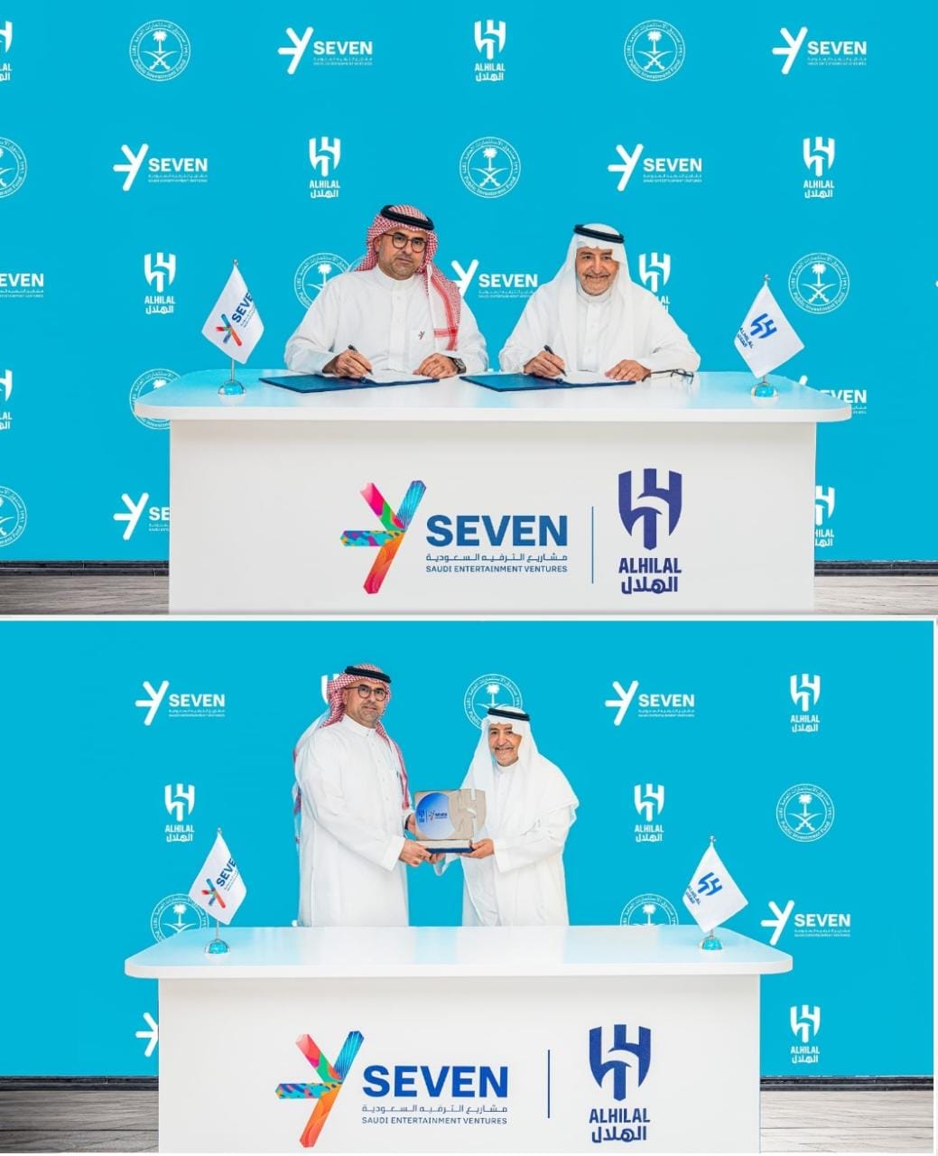 أعلنت شركة مشاريع الترفيه السعودية “سڤن”، المملوكة بالكامل لصندوق الاستثمارات العامة، عن توقيع اتفاقية شراكة رسمية مع نادي الهلال السعودي تشمل الفريق الأول لكرة القدم، ابتداءً من موسم 2023/2024 ولمدة 3 سنوات، وتشمل بنود الشراكة حقوقاً تجارية وتسويقية متبادلة بين الطرفين.