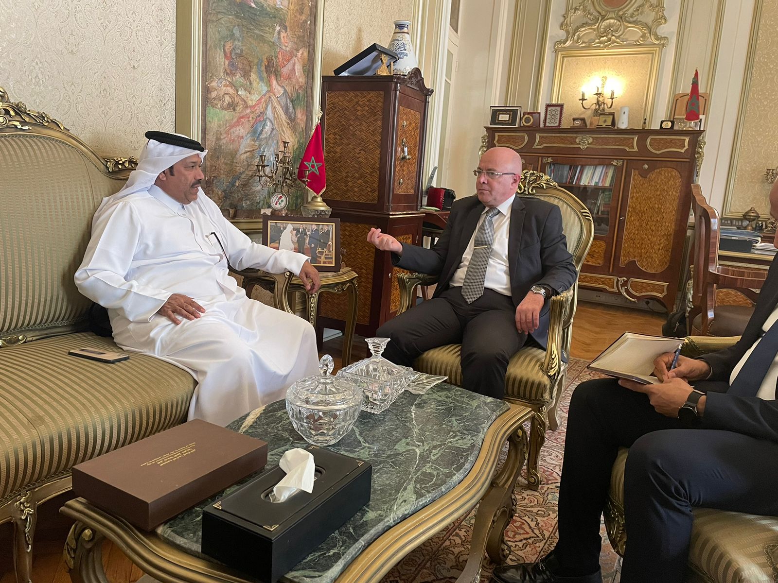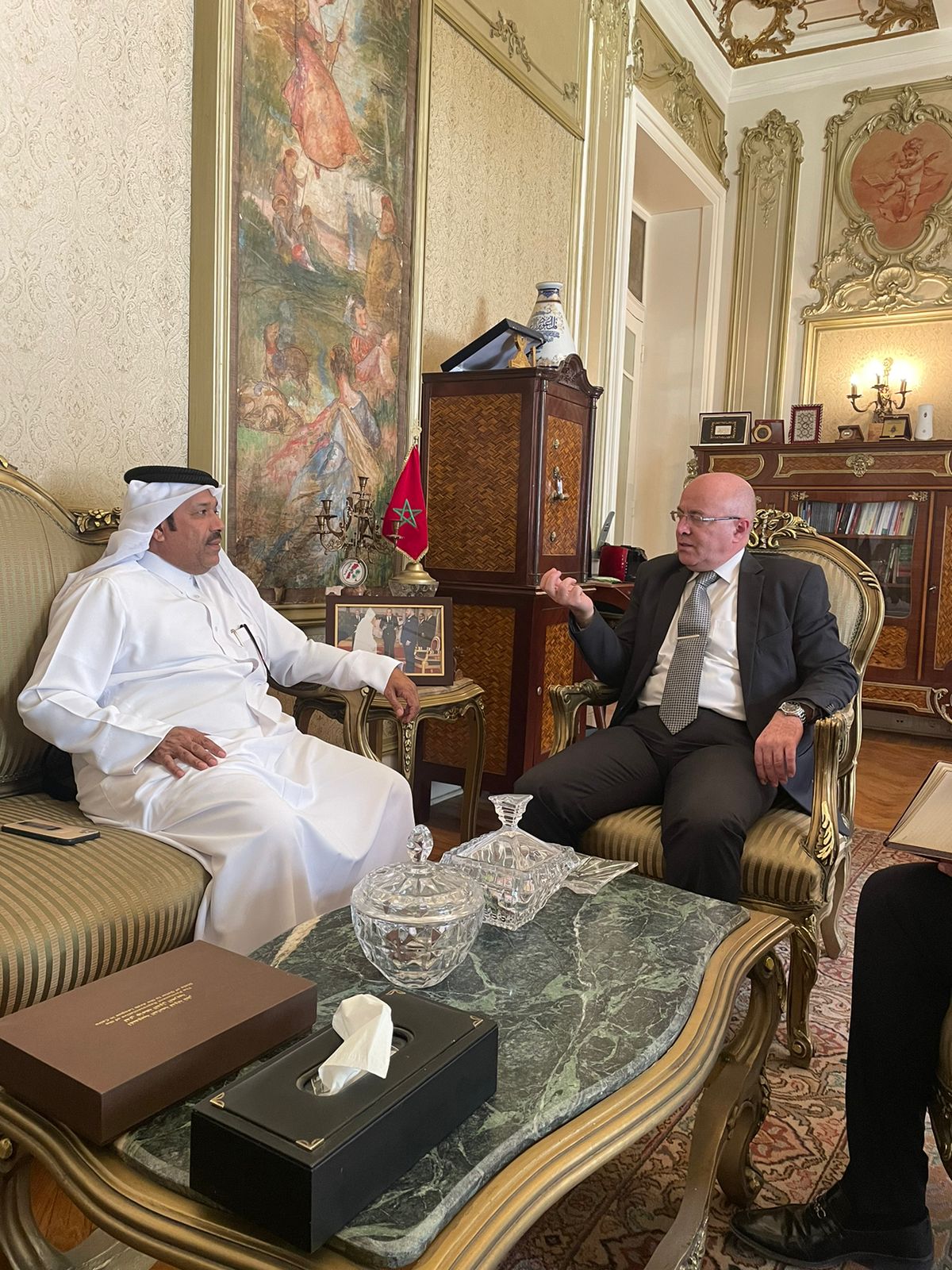 استقبل السفير أحمد التازي سفير المملكة المغربية لدى جمهورية مصر العربية والمندوب الدائم لدى جامعة الدول العربية سعادة المستشار جابر المري رئيس لجنة حقوق الإنسان العربية- لجنة الميثاق- بمقر السفارة المغربية بالقاهرة. تضمن اللقاء نقاشات حول جهود المملكة المغربية في مجال حقوق الإنسان في الإطار الدولي والإقليمي والوطني؛ خاصة في إطار آليات العمل العربي المشترك. كما تضمنت النقاشات جهود لجنة حقوق الإنسان العربية – لجنة الميثاق- كآلية تعاقدية تمارس عملها لأكثر من عقد.