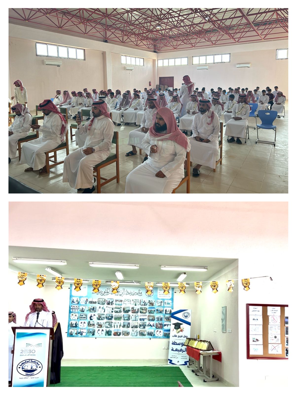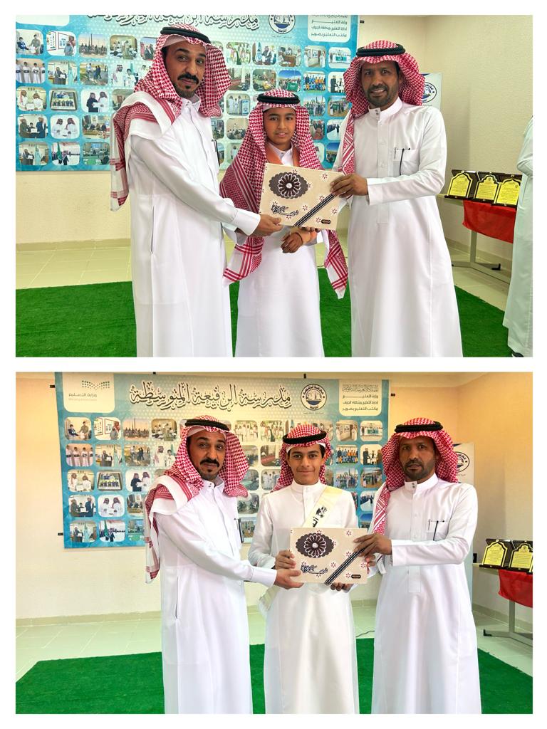رعى رئيس الشؤون التعليمية بمكتب التعليم بصوير الأستاذ فايز بن أميلح الرويلي، وبحضور مشرف التوجيه الطلابي الأستاذ جميل بن كساب الشايع، وعددٍ من أولياء أمور الطلاب، حفل ختام برامج وأنشطة مدرسة الرفيعة المتوسطة وبرنامج توديع طلاب الصف الثالث متوسط بالمدرسة .