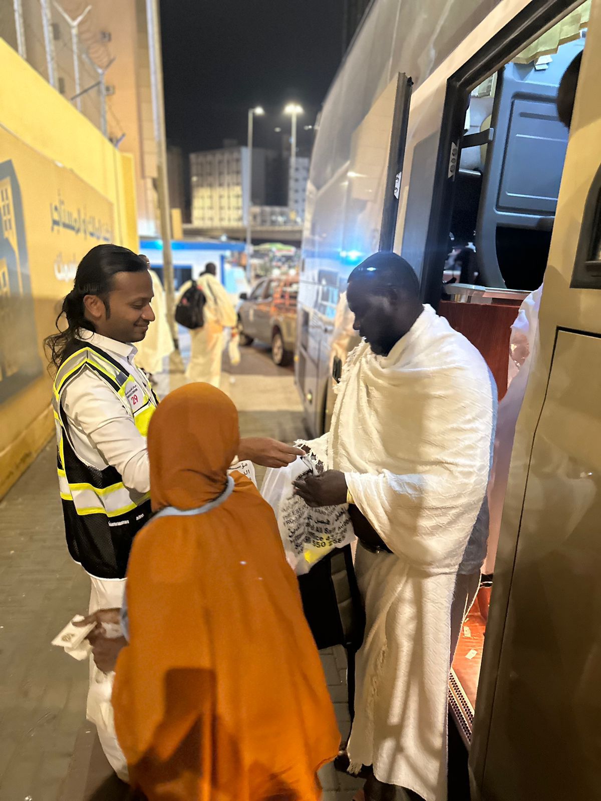 وقام مركز الخدمة الميدانية 29 والتابع لشركة مطوفي حجاج الدول الأفريقية غير العربية برئاسة سعادة المستشار فيصل بن علي سيف الدين – رئيس المركز باستقبال وفد ضيوف الرحمن بماء زمزم المبارك والحلويات المكية والهدايا والوجبات الساخنة والأناشيد والأهازيج والمجسات الحجازية المفعمة بالود والمحبة