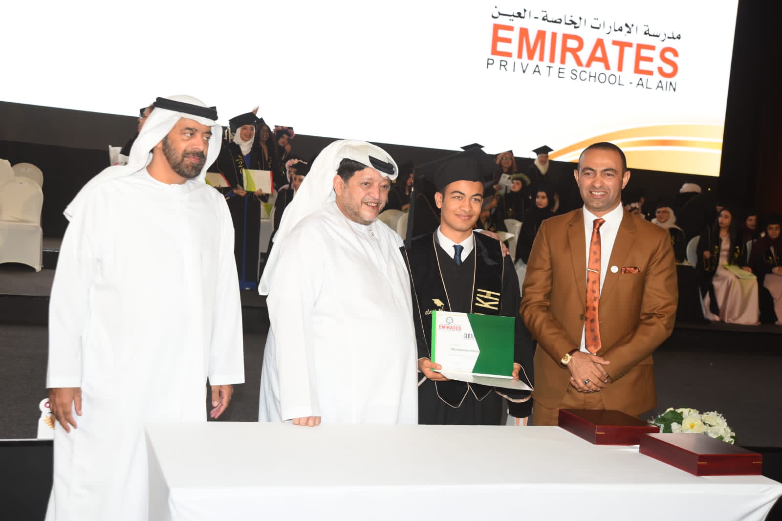 شهد معالي الشيخ الدكتور سعيد بن طحنون آل نهيان احتفال مدرسة الإمارات الخاصة بمناسبة تخريج الدفعة 33 من خريجيها الحاصلين على الثانوية العامة، وحضر الحفل الذي اقيم في قاعة مركز العين للمؤتمرات سعة الشيخ الدكتور سالم محمد بن ركاض عضو المجلس الوطني الاتحادي سابقا والدكتور خالد منصور مدير مدرسة الإمارات وعدد من الشخصيات التربوية وأعضاء الهيئتين الإدارية والتعليمية وأولياء أمور الخريجين.