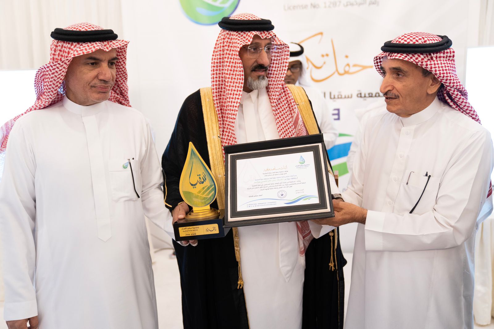 وفي ذات السياق ، كرمت الجمعية سفراء جمعية سقيا وهم المستشار الاعلامي حسن الناهسي ، والناشط الاجتماعي اللواء متقاعد محمد الحارثي ، والأستاذ مبارك الأكلبي وذلك على ماقدموه من جهود في نشر رسالة الجمعية والتعريف ببرامجها ومشاريعها .