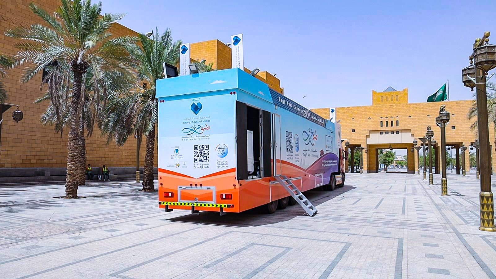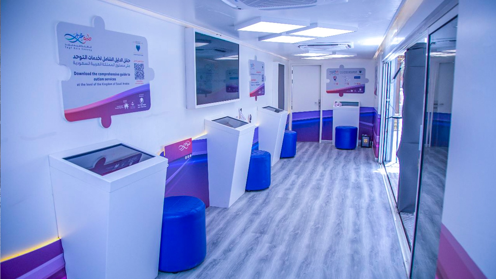 وتتكون القافلة من حافلات مصممة بشكل احترافي لتكون عيادات متكاملة ومجهزة بأحدث التجهيزات والتقنيات المتطورة ، لتساعد زوار القافلة على اكتشاف التوحد من خلال الإجابة المباشرة على أسئلة الاستمارة الالكترونية المخصصة لذلك ، كما تمكن الزوار من خوض تجربة عيش التوحد الافتراضية ،