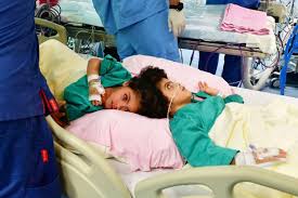 إنفاذًا لتوجيهات خادم الحرمين الشريفين الملك سلمان بن عبدالعزيز آل سعود، وسمو ولي عهده الأمين – حفظهما الله – تمكّن الفريق الجراحي المختص – بحمدالله – من فصل التوأم السيامي المصري “سلمى وسارة” اللتان تشتركان في منطقة الرأس بعد عملية جراحية معقدة استغرقت 17 ساعة بدأت في الساعة الثامنة من صباح يوم أمس، شارك فيها 31 من الاستشاريين والأخصائيين والفنيين والكوادر التمريضية من تخصصات التخدير وجراحة الأعصاب للأطفال والتجميل وجراحة الأطفال.
