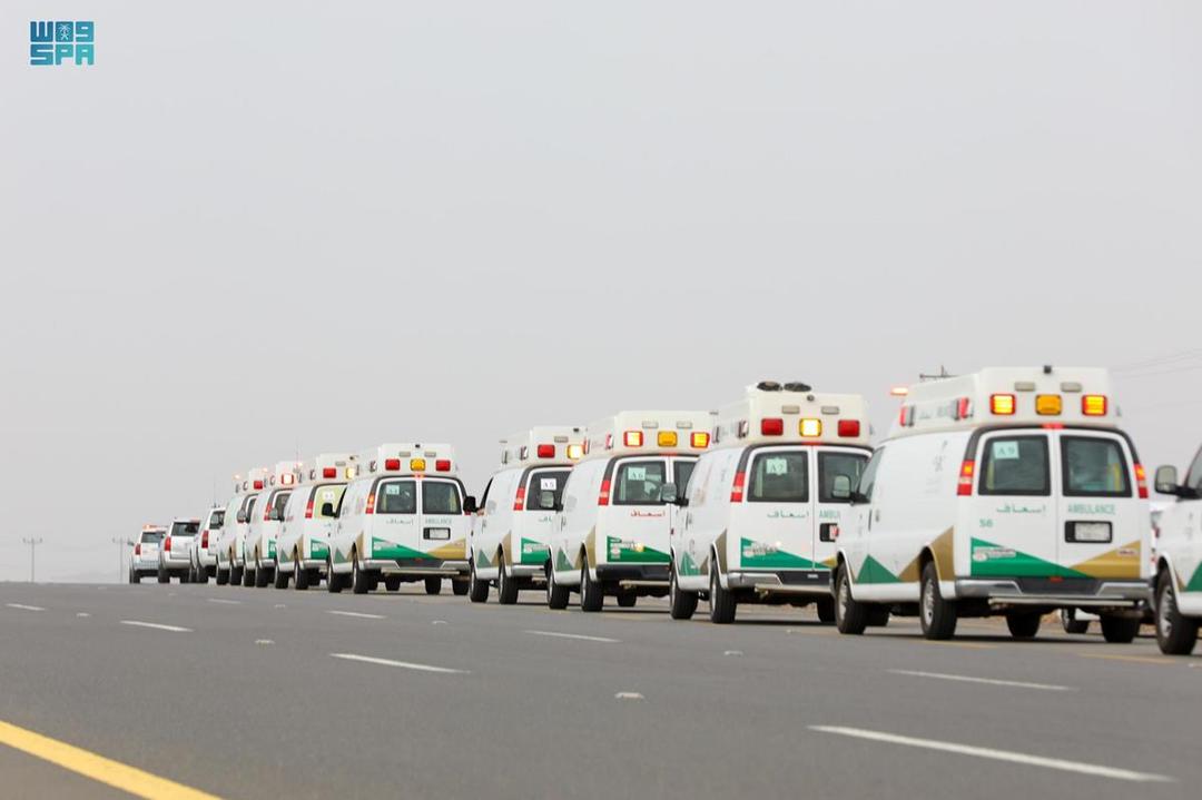 وأوضحت وزارة الصحة أن القافلة تضم أسطولًا متكاملًا يتكون من 16 سيارة إسعاف مزودة بجميع التجهيزات الطبية المتكاملة، مع تواجد فريق طبي متخصص مكون من 83 ممارسًا متخصصًا (أطباء وتمريض ومسعفين ) إلى جانب 4 سيارات إسعاف متمركزة على طريق الهجرة بين المدينة المنورة ومكة المكرمة، وسيارتي إسعافات العناية المركزة إضافة إلى 5 إسعافات مساندة و كابينة أكسجين متكاملة، وورشة إسعافات متنقلة وحافلة لنقل مرافقي المرضى.