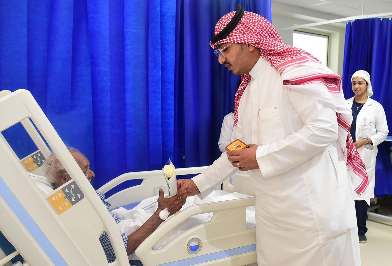 نظمت إدارة العلاقات العامة بمستشفى جازان العام برنامج معايدة المرضى المنومين والموظفين في المستشفى.