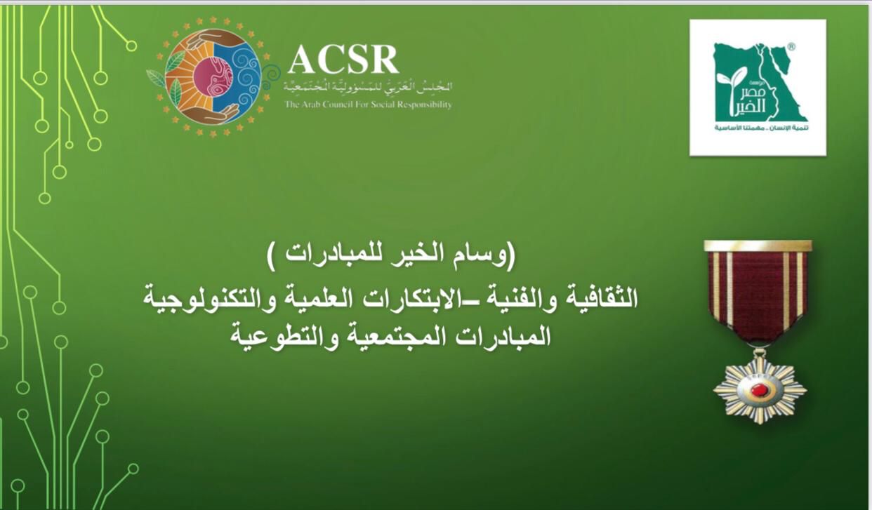 إيماناً منها بأهمية وقيمة الشباب وتشجيعاً لهم على التميز الدائم والابتكار حيث يعد الشباب الثروة الحقيقية بالمجتمع وأساس تقدمه ، أطلقت مؤسسة “مصر الخير” بالتعاون مع المجلس العربي للمسؤولية المجتمعية مسابقة تشجيعية للشباب من الجنسين تحت شعار “وسام الخير للمبادرات” وذلك في إطار سعيها الدائم لتشجيع الشباب على الابتكار والإبداع .