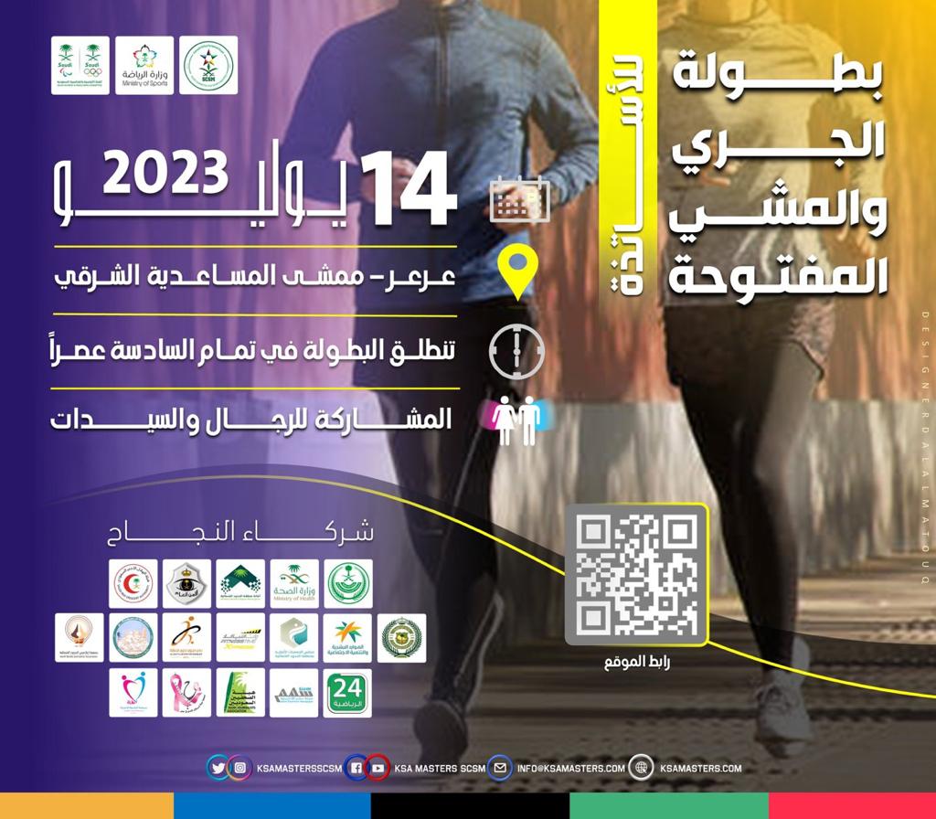 تقيم اللجنة بطولة الجري والمشي المفتوحة للأساتذة والتي ستقام في منطقة الحدود الشمالية عرعر يوم الجمعة القادم الرابع عشر من شهر يوليو الحالي 2023م