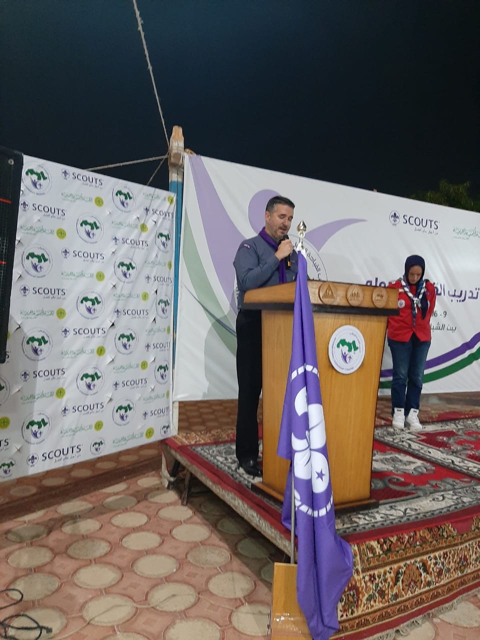 وعمرو حمدي الأمين العام للاقليم الكشفي العربي رئيس المنظمه الكشفية العربية حيث يقام تدريب القياده العربيه بمشاركه ٣٢ مشارك من جمعيات الكشافه من ١٣ دوله عربيه قام المتدربين خلال الفتره من ١٠ إلى ١٥ يوليو الجاري بالالتزام ببرنامج التدريب على يد قيادات كشفية عالميه