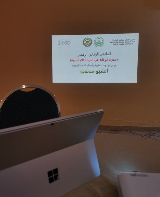نظمت جمعية حماية الأسرة بالتعاون مع مكافحة المخدرات الإدارة العامة للشؤون الوقائية لقاء توعوي في مقر الجمعية بجدة عن خطورة و اضرار المادة المخدرة ( الشبو) لمستفيدات الجمعية بهدف توعيتهم و توعية الأسرة ككل و طرق التبليغ و التعامل مع مخاطر الإدمان و العلاج