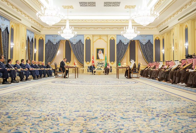 عقد ولي العهد رئيس مجلس الوزراء الأمير محمد بن سلمان بن عبد العزيز، والرئيس التركي رجب طيب أردوغان، جلسة مباحثات رسمية، ولقاءً ثنائياً، تناولا خلاله العلاقات بين المملكة والجمهورية التركية، وسبل تطويرها.