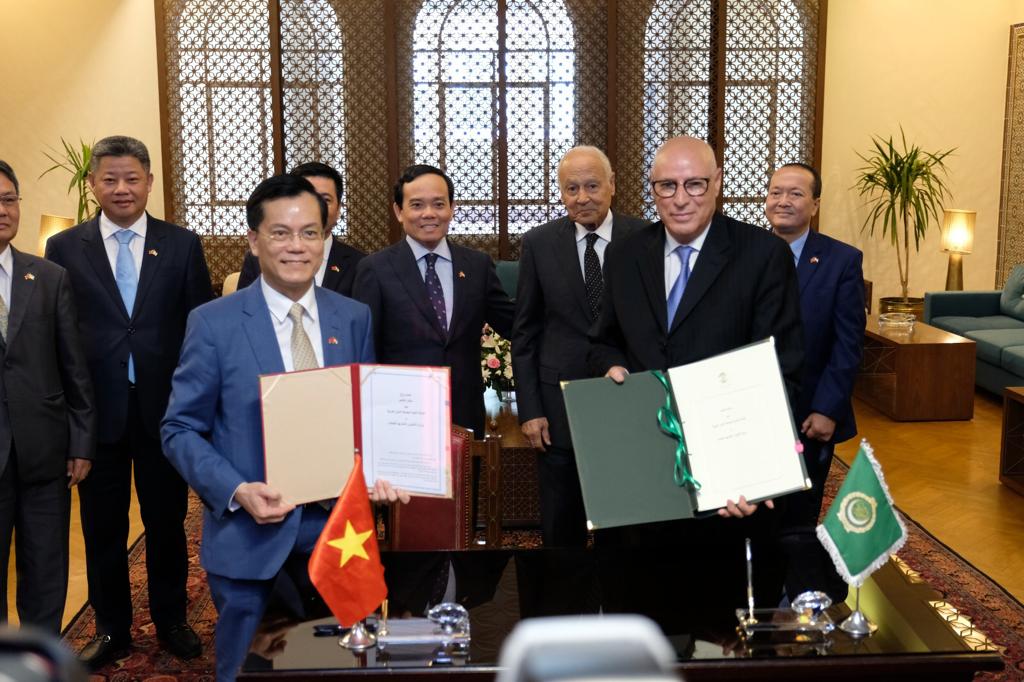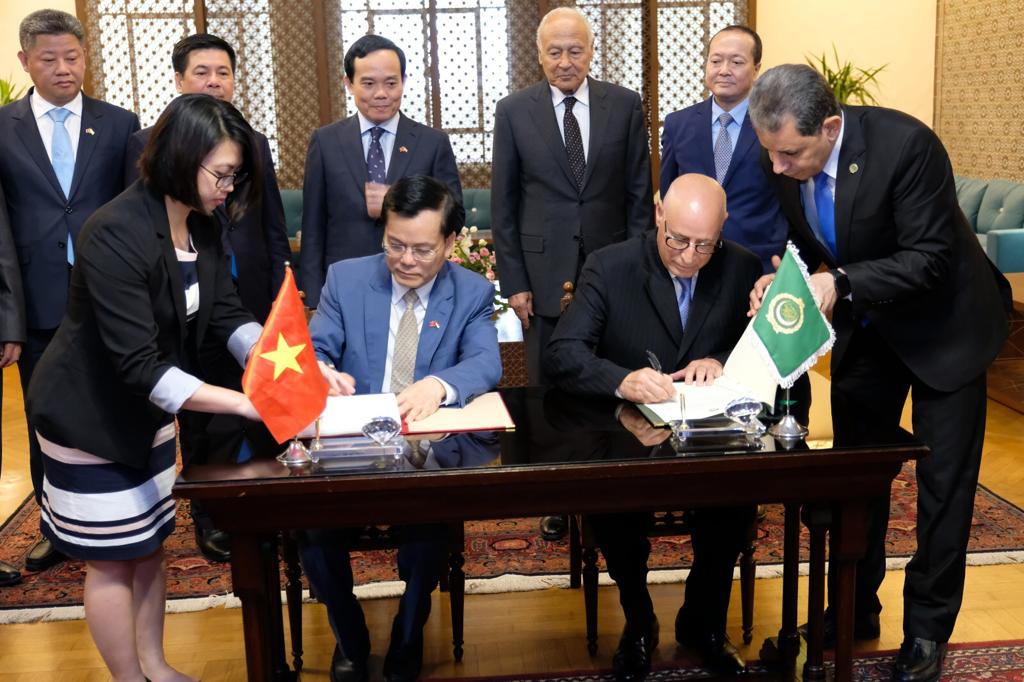 وقعت بمقر الأمانة العامة لجامعة الدول العربية مذكرة تفاهم بين جامعة الدول العربية وجمهورية فيتنام الاشتراكية والتي تهدف لعقد اجتماعات دورية على مستوى رفيع، والتشاور بشأن القضايا الإقليمية والدولية ذات الاهتمام المشترك، بما في ذلك تعزيز الشراكة والتعاون في المجالات الاقتصادية والصناعية والثقافية والسياحية.