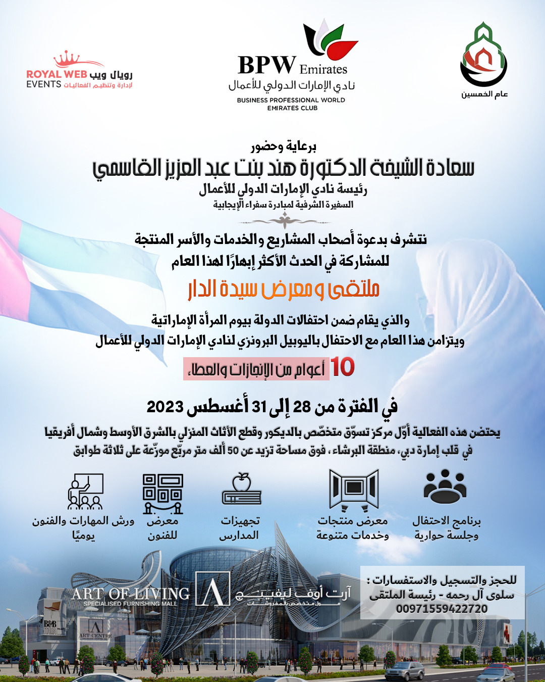والذي يقام ضمن احتفالات الدولة بيوم المرأة الإماراتية، ويتزامن هذا العام مع الإحتفال باليوبيل البرونزي لنادي الإمارات الدولي للأعمال Bpw Emirates .