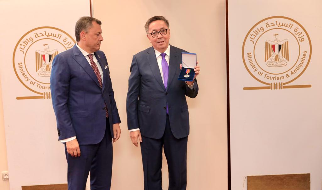 تسلم، أحمد عيسي وزير السياحة والآثار وسام “شفاعه” والذي منحه إياه فخامة رئيس دولة كازاخستان وقام بتسليمه السفير “خيرت لاما شريف” سفير دولة كازاخستان بالقاهرة، تقديراً لجهوده في دعم العلاقات الثنائية بين مصر وكازاخستان في مجال السياحة والآثار، والجهود التي بذلتها الوزارة على مدار سنوات للانتهاء من ترميم جامع الظاهر بيبرس والذي تم افتتاحه في يونيو الماضي.