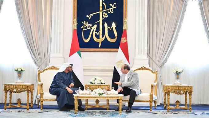 استقبل الرئيس عبد الفتاح السيسي، بمدينة العلمين، الشيخ محمد بن زايد آل نهيان، رئيس دولة الإمارات العربية المتحدة.
