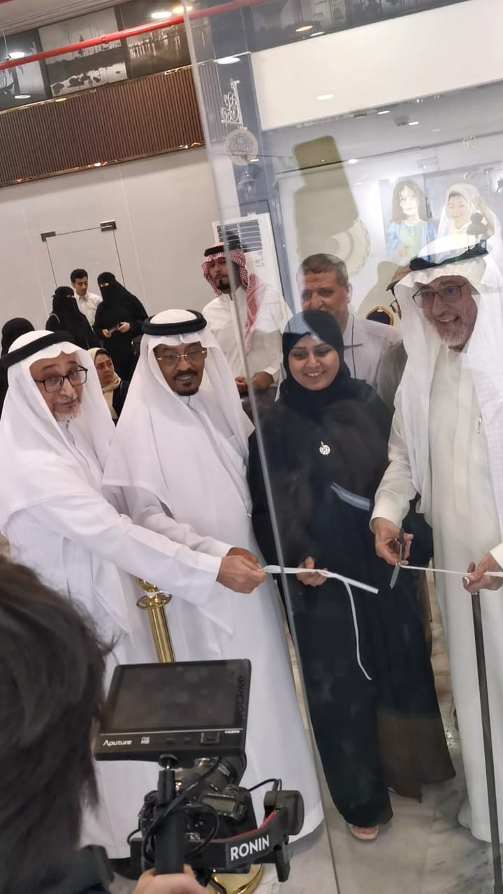 وفور وصول الأستاذ هشام أحمد بنجابي تم قص شريط الإفتتاح للمعرض وتجول في المعرض وأثنى على ما احتوي عليه المعرض من محتويات قيمة وأعمال إبداعية رائعة