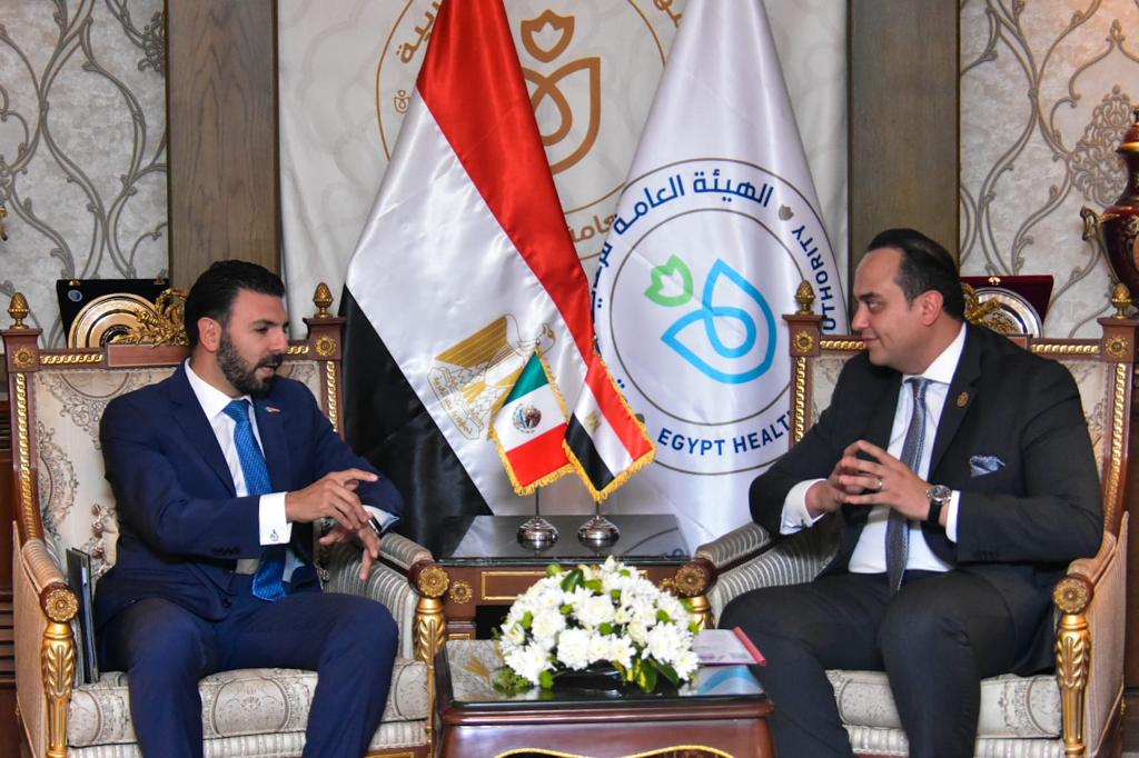 استقبل الدكتور أحمد السبكي، رئيس الهيئة العامة للرعاية الصحية والمشرف العام على مشروعي التأمين الصحي الشامل وحياة كريمة بوزارة الصحة والسكان، السيد هيكتور أورتيجا، القائم بأعمال السفير المكسيكي في مصر، والسيد خايمي أرترو سواريز، الملحق الإداري بالسفارة، وذلك بالمقر الرئيسي للهيئة.