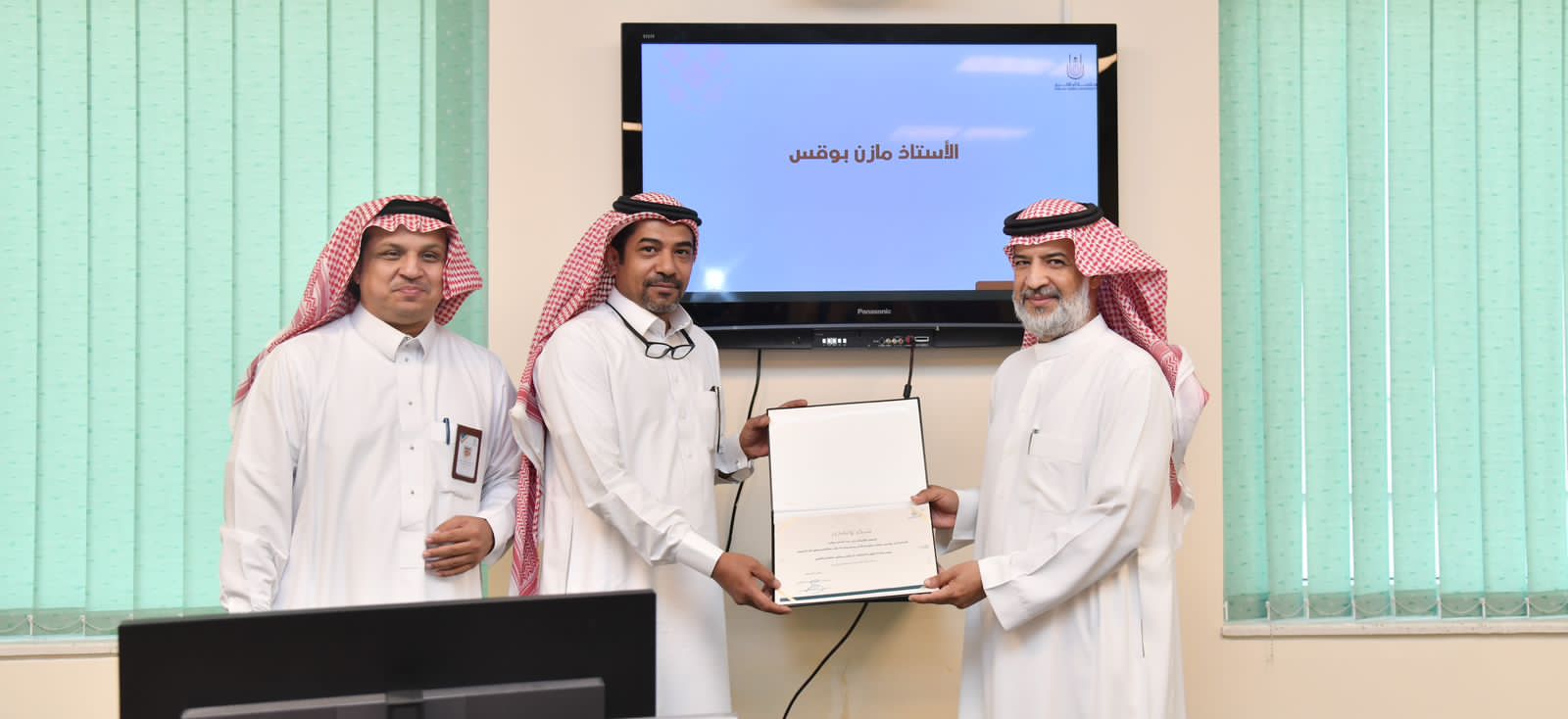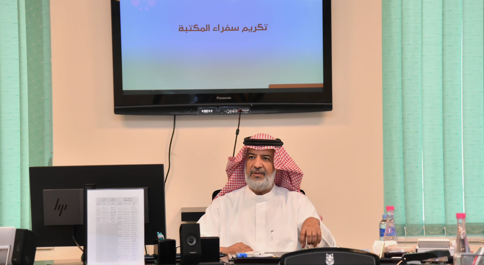 و اطَّلع خلال الزِّيارة على آلية رقمنة المخطوطات وبناء قاعدة الإنتاج الفكري للجامعة، وبناء المسيرات الإلكترونيَّة، ومنصَّة لوحة معلومات المكتبة؛ و التي توضح معلومات إحصائيَّة عن المكتبة وخدمات المكتبة ومحتوياتها ، والخطَّة التَّنفيذيَّة للمكتبات الفرعيَّة، كما قام بتكريم الموظفين والموظفات القائمين على الأعمال المكتبية.