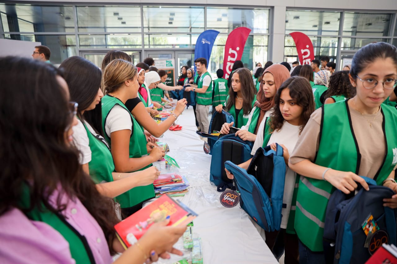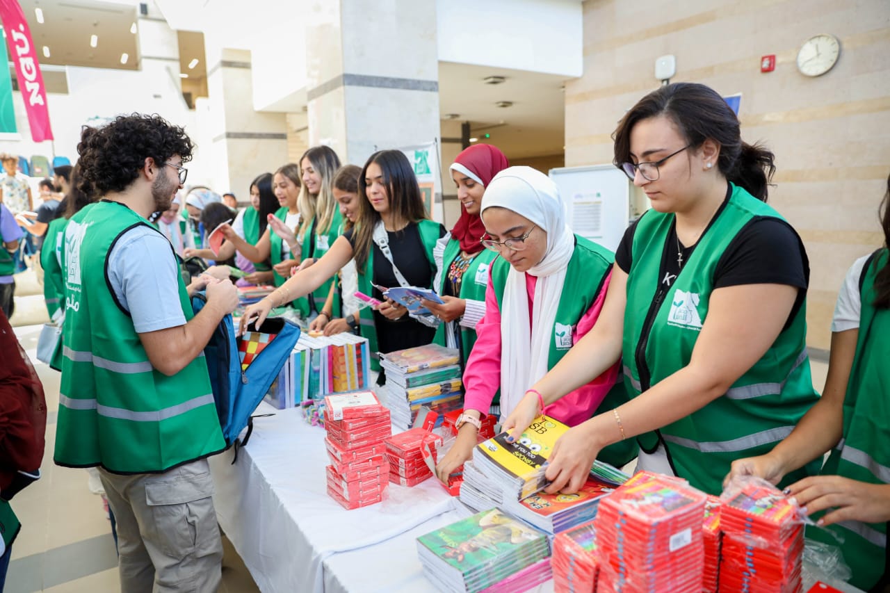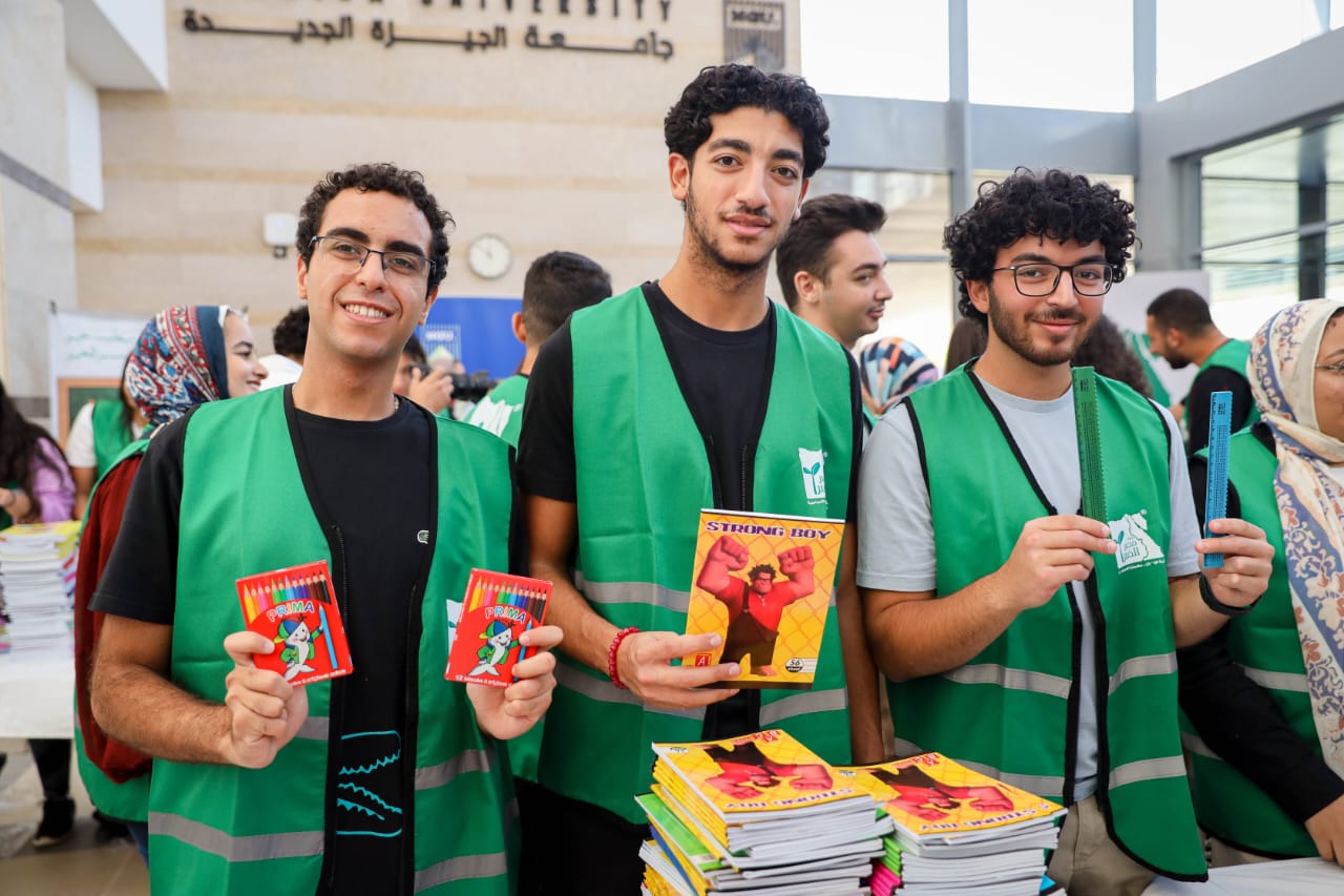 طلاب جامعة نيو جيزة يساهمون بتعبئة 500 شنطة مدرسية