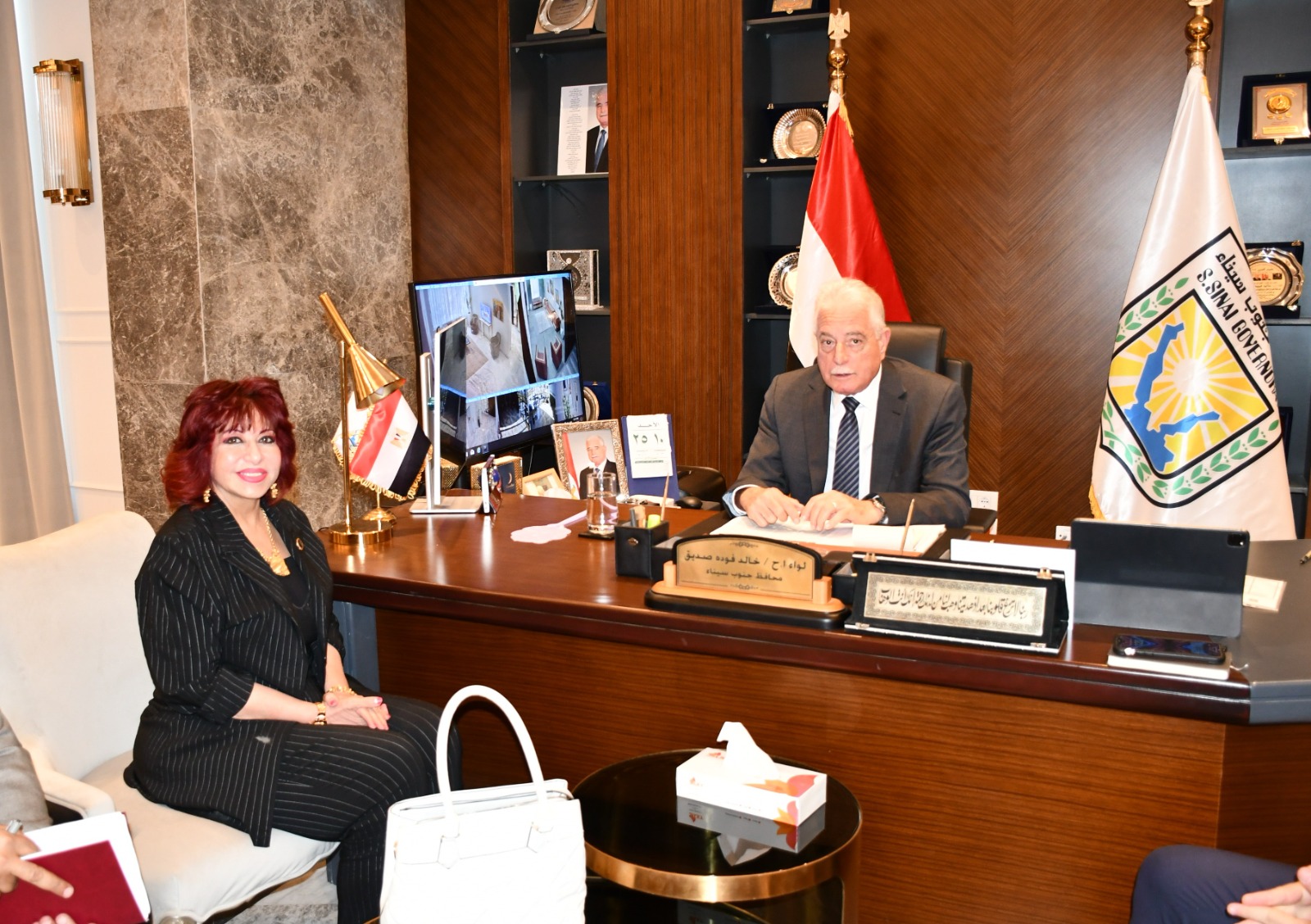 استقبل اللواء خالد فودة محافظ جنوب سيناء بمقر مكتبه ، بالمحافظة ، وفد اتحاد المستثمرات العرب برئاسة د. هدى يسي .
