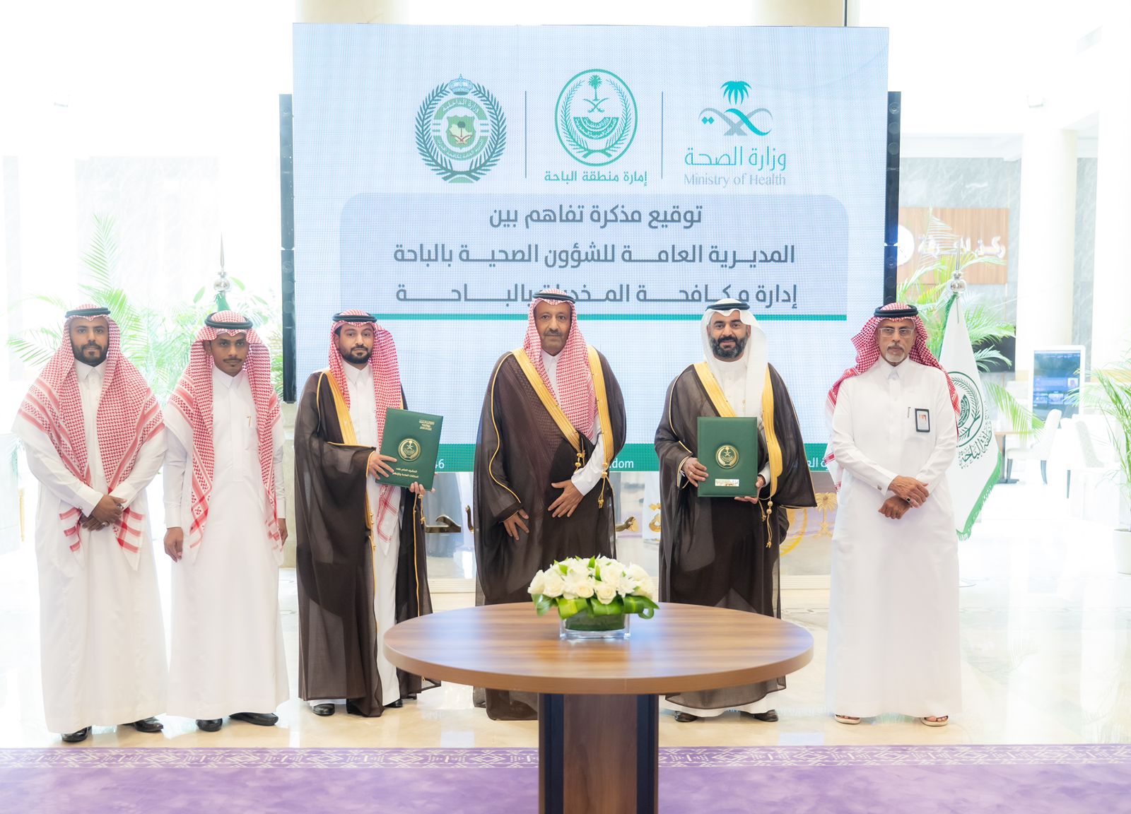 ومثّل مديرية مكافحة المخدرات بمنطقة الباحة العقيد رشدان بن دخيل الله السيالي، فيما مثل والمديرية العامة للشؤون الصحية بالمنطقة الدكتور سمير بن مشبب الشهراني .
