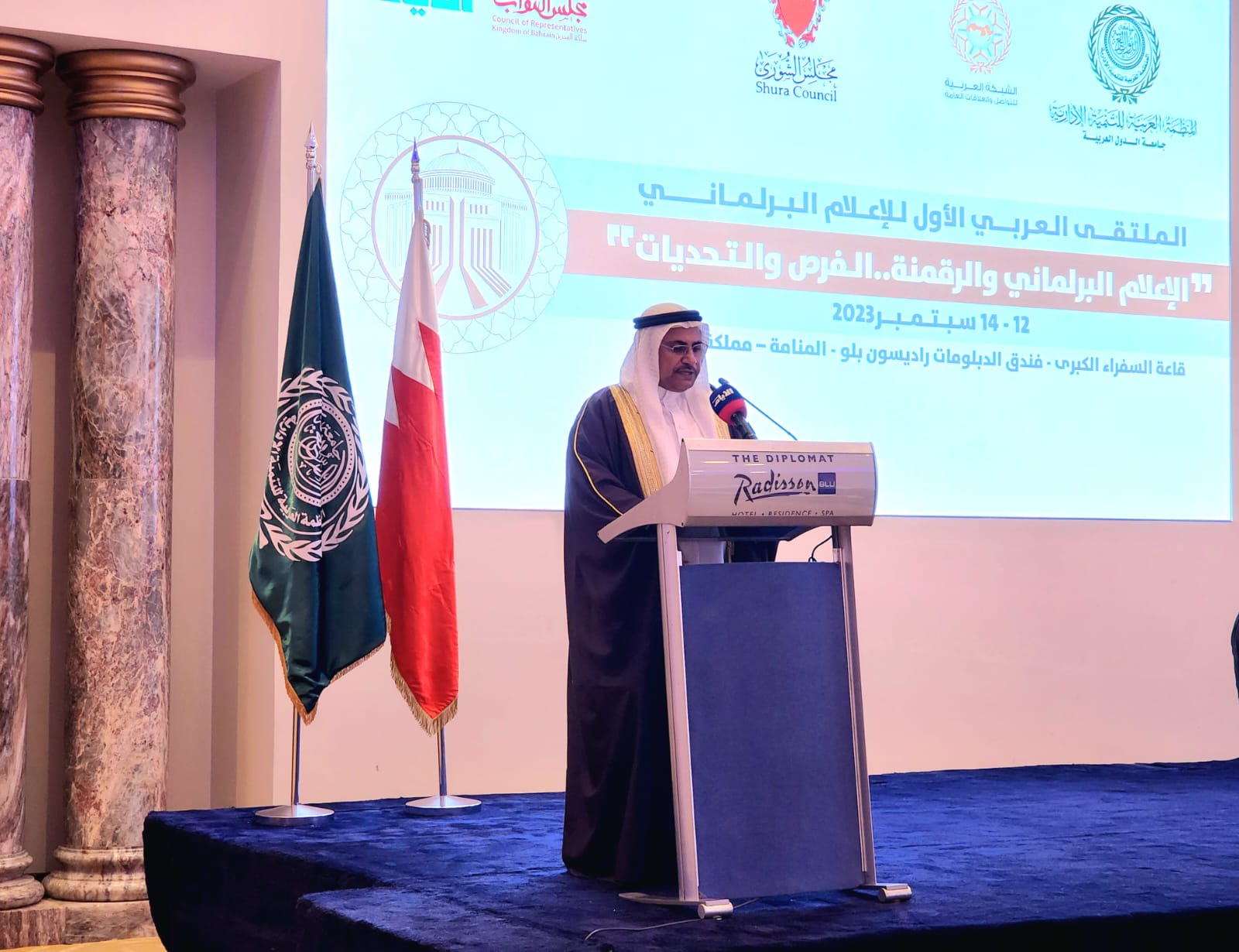 خلال مشاركته في افتتاح الملتقى العربي الأول للإعلام البرلماني في المنامة