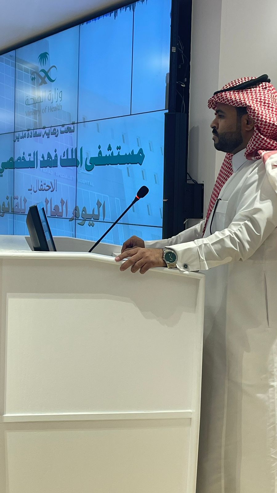 إلى ذلك أكد المستشار القانوني ومدير الإدارة القانونية بصحة تبوك الأستاذ سامي بن مطر المالكي على أن الاحتفال باليوم العالمي للقانون يأتي ترسيخًا لقيمة القانون في وجدان كل مواطن .