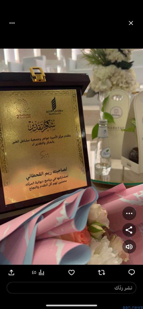 من جهتها قدمت مديرة مركز الاميرة جواهر لمشاعل الخير الاستاذة مريم اليحيا شكرها وتقديرها لكل من حضر وشارك معنا وساهم في نجاح لقاء الديوانيه واخص بالشكر سيدات الاعمال والرعاه على جهودهم مع تمنياتي للجميع بالتوفيق .