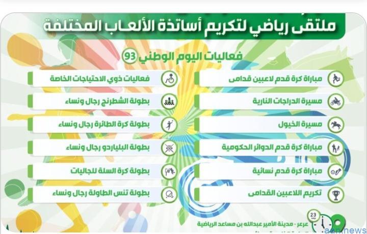 تنظم اللجنة السعودية لرياضة الأساتذة برئاسة رئيس اللجنة الأستاذ سالم بن مساعد مبروك الأحمدي برنامجا رياضياً ، يعقد في المدينة الرياضية بمدينة عرعر بمناسبة الاحتفاء باليوم الوطني للمملكة (93)