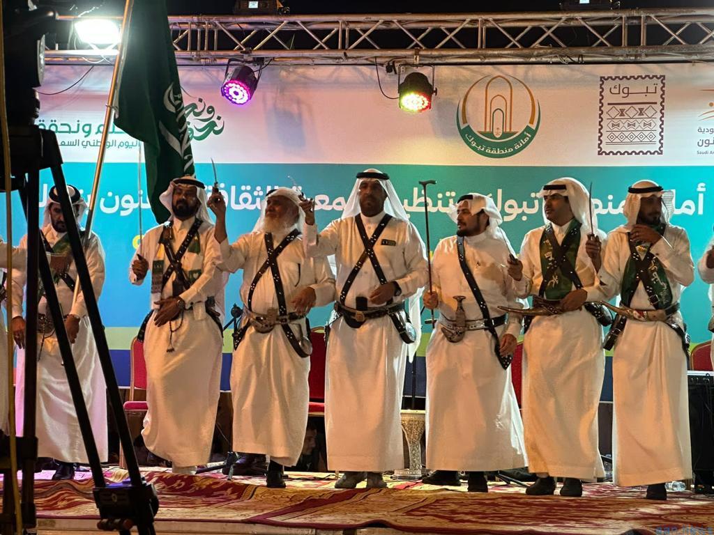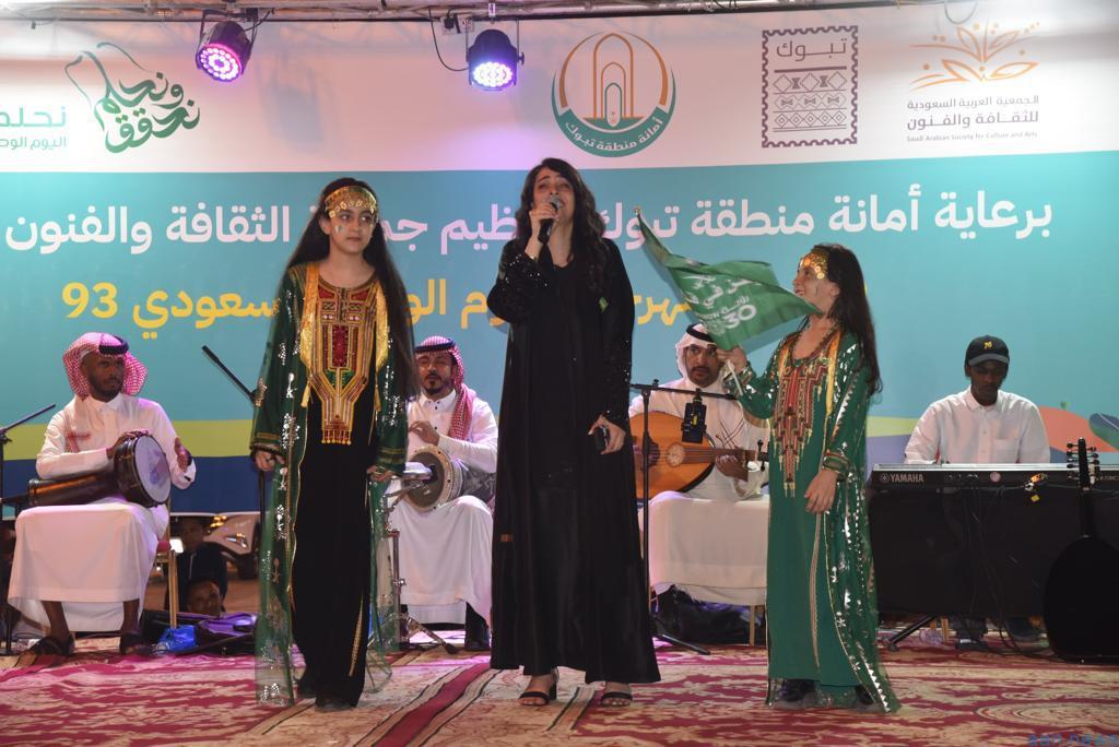 احتفلت جمعية الثقافة والفنون بمنطقة تبوك وبرعاية أمانة المنطقة بفعاليات مهرجان اليوم الوطني الـ 93 للمملكة وذلك بجادة الأمير فهد بن سلطان بتبوك وبمشاركة مايقارب ( ٣٠٠) مابين فنانيين موسيقيين وشعراء وفرق شعبية ومنظمين .