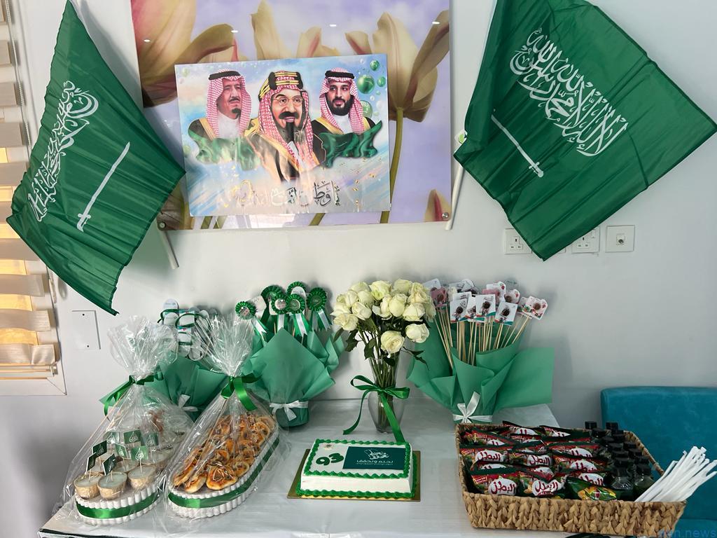 وكان الاحتفال جميل حيث تم استقبال المراجعين من قبل مدير مركز الرعاية رمزي حكمي وقدمت الهدايا لهم عبر باقات الزهور والرايات الصغيرة تحمل علم المملكة العربية السعودية .