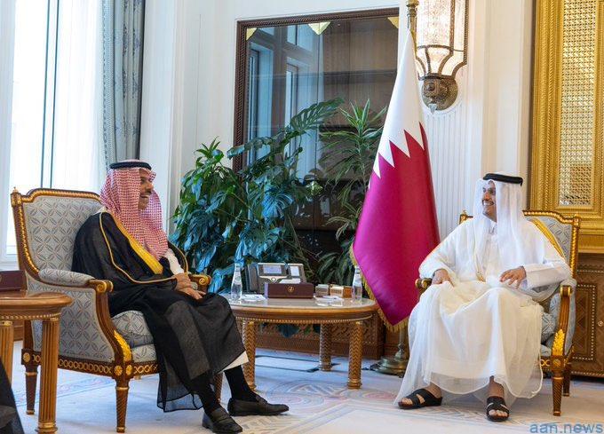 التقى الأمير فيصل بن فرحان بن عبدالله، وزير الخارجية، في الديوان الأميري بالعاصمة القطرية الدوحة، اليوم، الشيخ محمد بن عبدالرحمن بن جاسم آل ثاني رئيس مجلس الوزراء وزير الخارجية في دولة قطر.