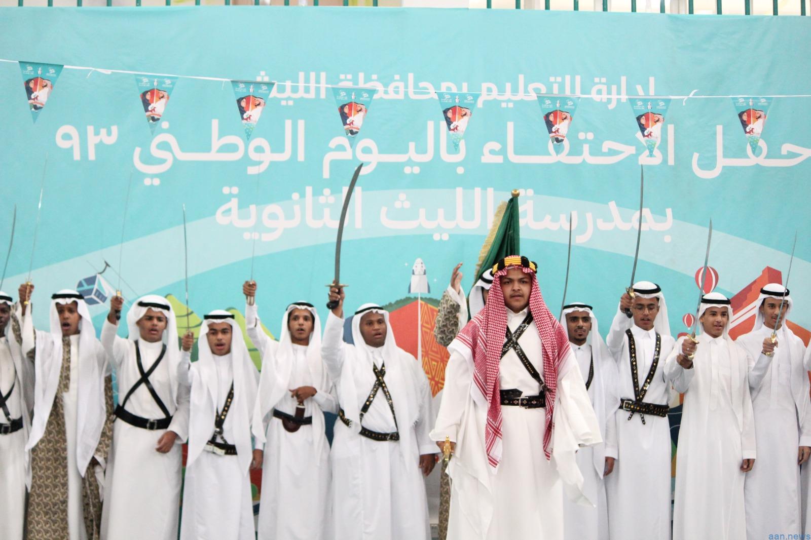 رعى محافظ الليث عمران بن حسن الزهراني ، وبحضور مدير التعليم الدكتور زكي بن رزيق الحازمي ، احتفال اليوم الوطني الثالث والتسعين للمملكة العربية السعودية في مدرسة الليث الثانوية .