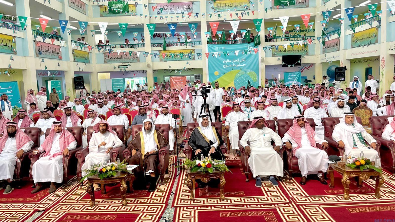 وكان الحفل قد تضمن نشاطًا رياضيًّا ومعرضًا فنيًّا وأوبريتًا وطنيًّا وفيلمًا مرئيًّا وقصائد وكلمات تحكي حب الوطن ، كما شارك المحافظ ومدير التعليم أبناءهم الطلاب ومنسوبي المدرسة في العرضة السعودية .