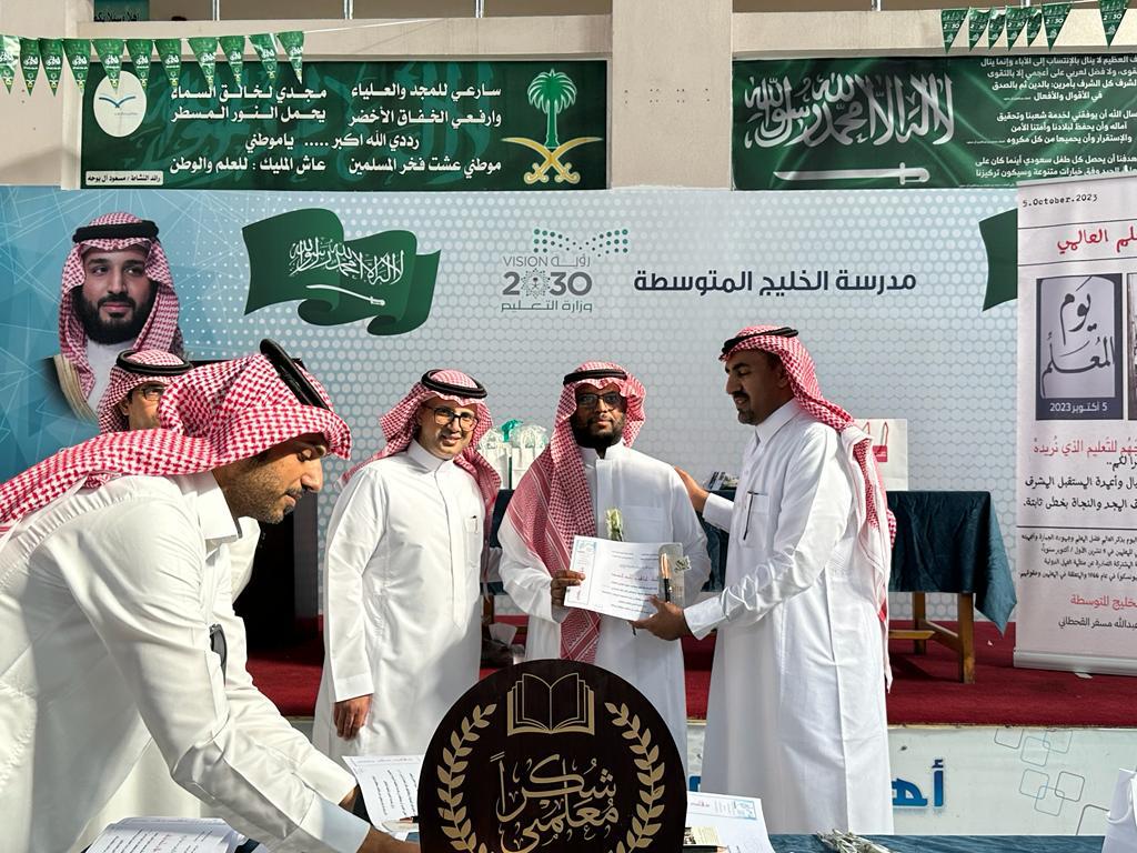 وأضاف ( الحازمي ) : إن قيادتنا الرشيدة تهتم بالعلم والتعليم ؛ فقد شيدت المدارس واختطت المناهج وأدخلت التقنية ، وكل تلك المهام يؤديها المعلمون بكفاءة ؛ لأنهم قادرون على مواجهة التحديات والاستجابة لكل المتغيرات ، فهم يتعاملون مع طلاب مختلفين في القدرات يقودون ويعززون قيمهم الوطنية ، ويبنون شخصيتهم الاجتماعية والثقافية والعلمية ليخدموا الوطن ويقطفوا ثمار تعلمهم ، مقدمًا شكره للمعلمين والمعلمات على كل ما يبذلونه في الميدان التعليمي .