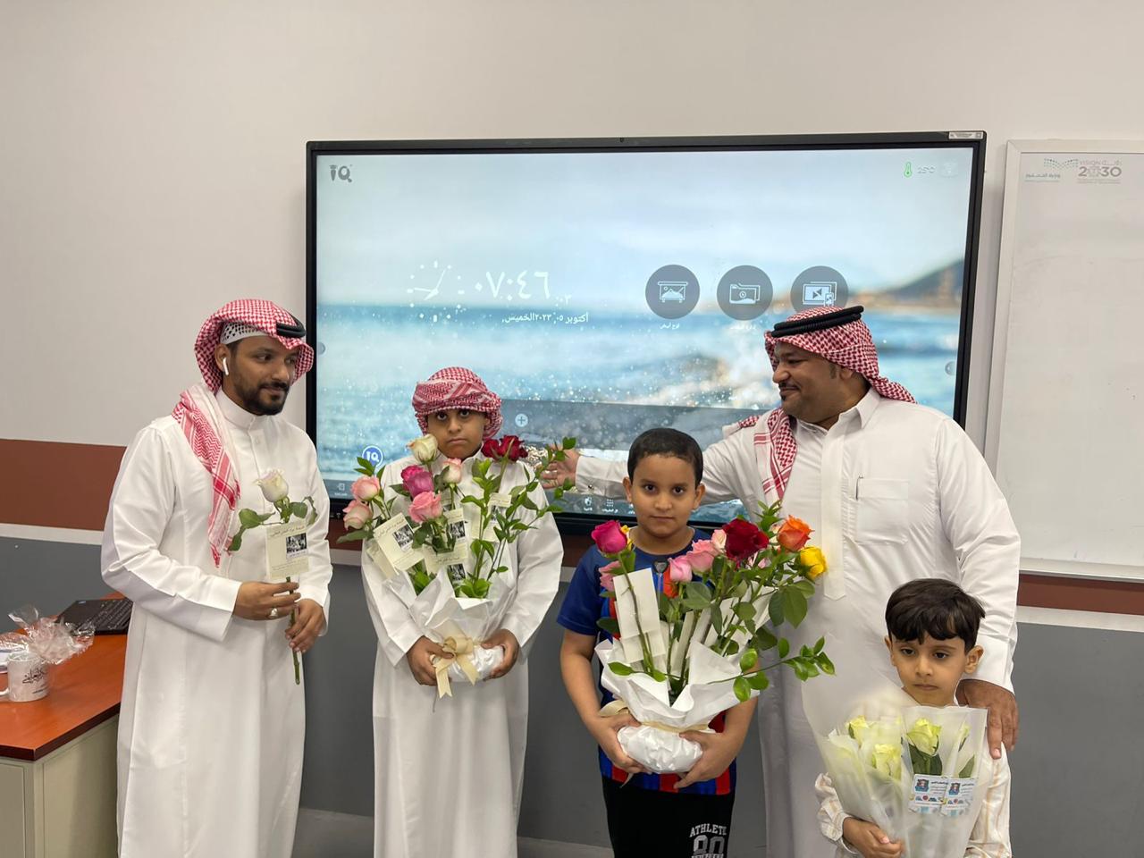 كما شهدت متوسطة الأمير سعود بن جلوي وابتدائية سعيد ابن العاص، ومتوسطة الخليج، مشاركة المشرف العام على العلاقات والإعلام بوزارة التعليم صالح الثبيتي، حيث شهد زيارة المعلمين في فصولهم وتكريمهم بمشاركة طلابهم وإدارة المدرسة.