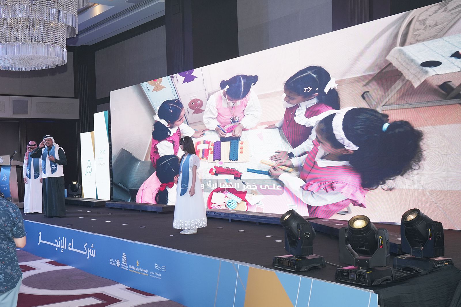 وخلال كلمته أكد سعادة وكيل وزارة التعليم للتعليم العام الدكتور حسن بن محسن خرمي بأن المملكة اليوم تسعى لبناء مواطن منافس عالميا وهذا ما يعد نتاج المبادرات التي تسهم في بناء طالب منافس عالميا من خلال بناء المعارف والقيم والمهارات عبر مبادرة سمو والتي تهدف لتأهيل معلمي ومعلمات المرحلة الابتدائية لتقديم تعليم نوعي متمركز حول شخصية المتعلم، ومبادر اسهام الهادفة لتمكين طلاب وطالبات المرحلة الثانوية من مهارات القرن الحادي والعشرين ليكونوا أكثر استعدادا لسوق العمل، وكذلك مبادرة بادر لزيادة المشاركة المجتمعية في التطوع، مشيدا بمرونة المبادرات في التعامل مع التحولات الوطنية والعالمية وتطوير المهارات المقدمة، مقدما الشكر لمؤسسة سالم بن محفوظ الأهلية وكذلك لجميع الشركاء إدارات التعليم، مقدما تحيات معالي وزير التعليم وقيادات الوزارة لجميع المعلمين والمعلمات، مؤكدا العناية الكبيرة التي توليها الوزارة بالمعلم، مستشرفا الجهود الجبارة في قطاع التعليم.