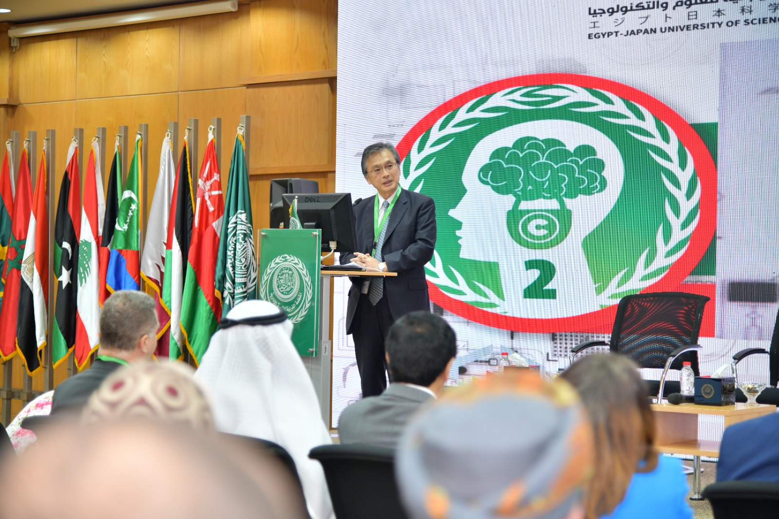 وأود أن اتوجه بخالص الشكر والتقدير السفير/ أوكا هيروشي – سفير اليابان في مصر – عضو مجلس أمناء الجامعة المصرية اليابانية للعلوم والتكنولوجيا، لحضوره الجلسة الافتتاحية لهذا المؤتمر، كما نتطلع للتعاون مع الجانب الياباني في كافة المجالات ذات الاهتمام المشترك.