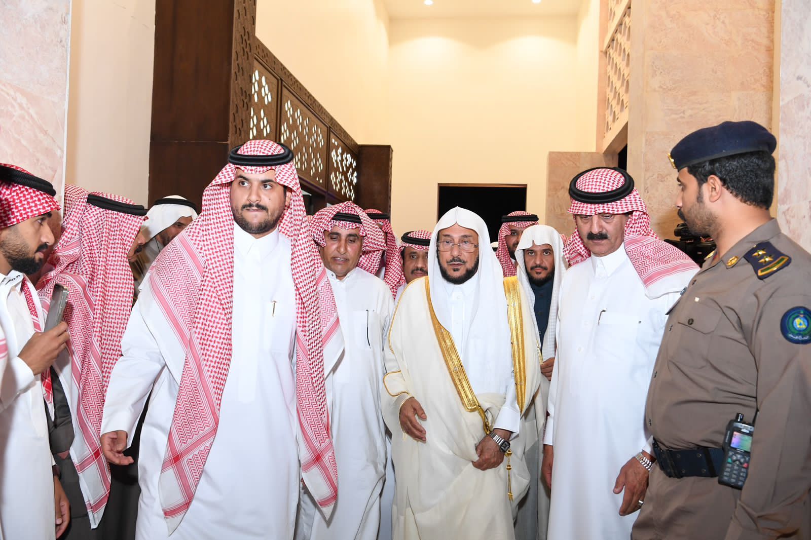 وخدمات، وأثنى معاليه على كل من ساهم في إتمام هذا البناء الجميل، مبيناً بأن المساهمة في بناء المساجد والعناية بها من الأعمال الصالحة التي ينال بها العبد الأجر الكبير بإذن الله، سائلًا الله سبحانه وتعالى أن يكون لمن بناه الأجر والمثوبة وأن يحفظ لهذه البلاد أمنها واستقرارها ورخاءها وأن يجزي قادتها خير الجزاء على دعمهم لكل ما من شأنه خدمة بيوت الله تعالى.