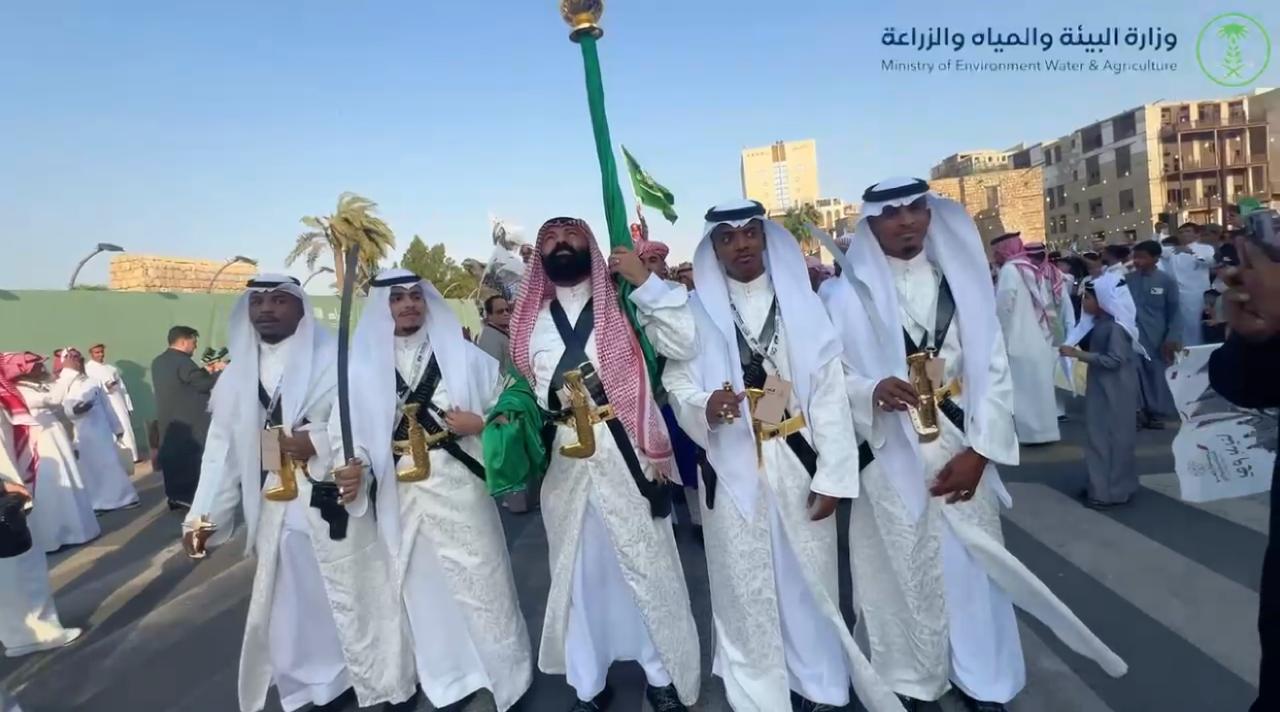 بالإضافة إلى توزيع الهدايا خلال المسيرة على المواطنين والمقيمين والشتلات الزراعيه تجسيدا لأهمية الوعي البيئي ومبادرة السعودية الخضراء
