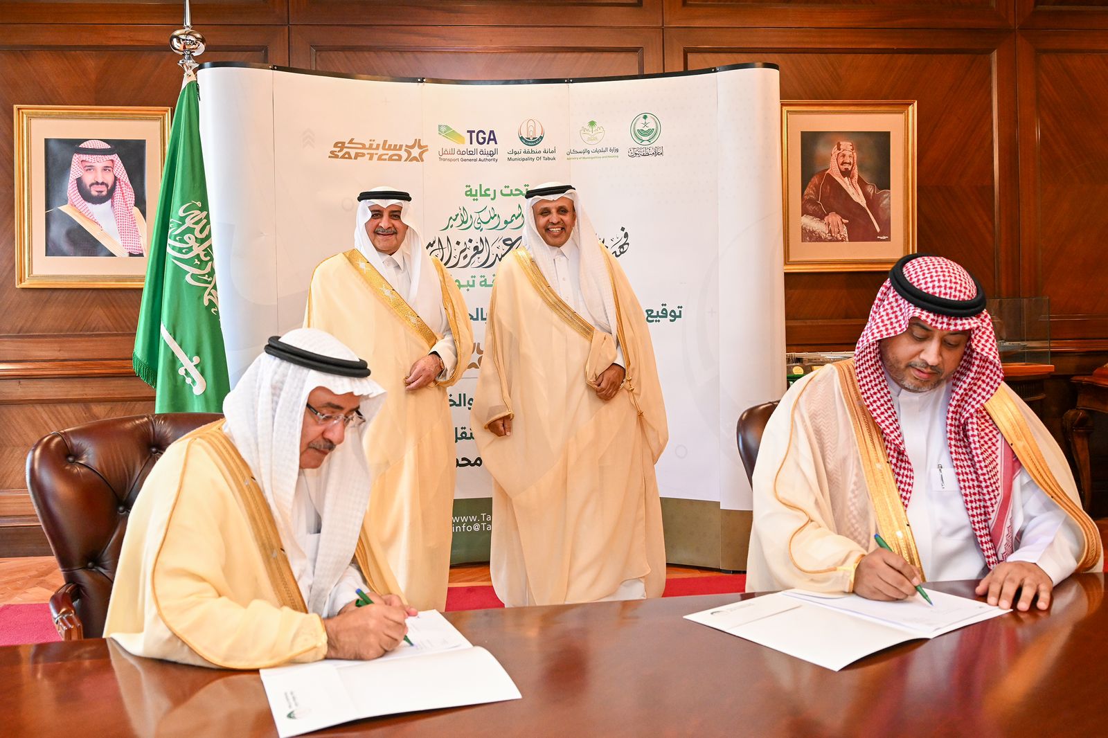 حيث قام بتوقيع العقد الرئيس التنفيذي للنقل العام في الشركة السعودية للنقل الجماعي تركي الصبيحي، وأمين منطقة تبوك المهندس حسام اليوسف.