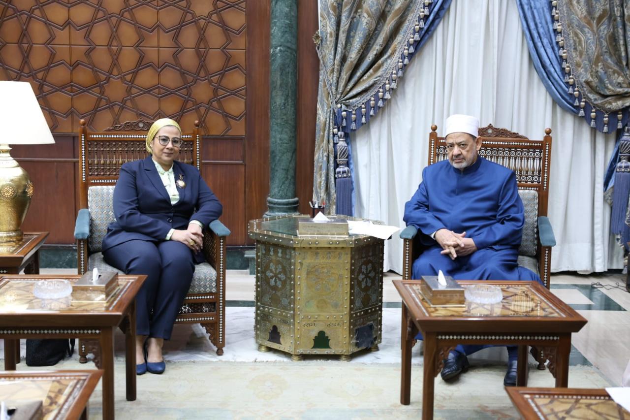 التقت المستشارة أمل عمار رئيسة المجلس القومي للمرأة بالإمام الأكبر الدكتور أحمد الطيب شيخ الأزهر الشريف، وذلك بحضور الدكتورة نسرين البغدادي نائبة رئيسة المجلس، والدكتورة سوزان القليني عضوة المجلس ،والدكتورة أفنان الشعيبي المديرة التنفيذية لمنظمة تنمية المرأة، والمهندسة جيهان توفيق رئيسة الإدارة المركزية لشؤون مكتب رئيس المجلس، لمناقشة سبل التعاون المشترك بما يدعم حقوق المرأة وتمكينها في العالم الإسلامي، وذلك بمقر مشيخة الأزهر.