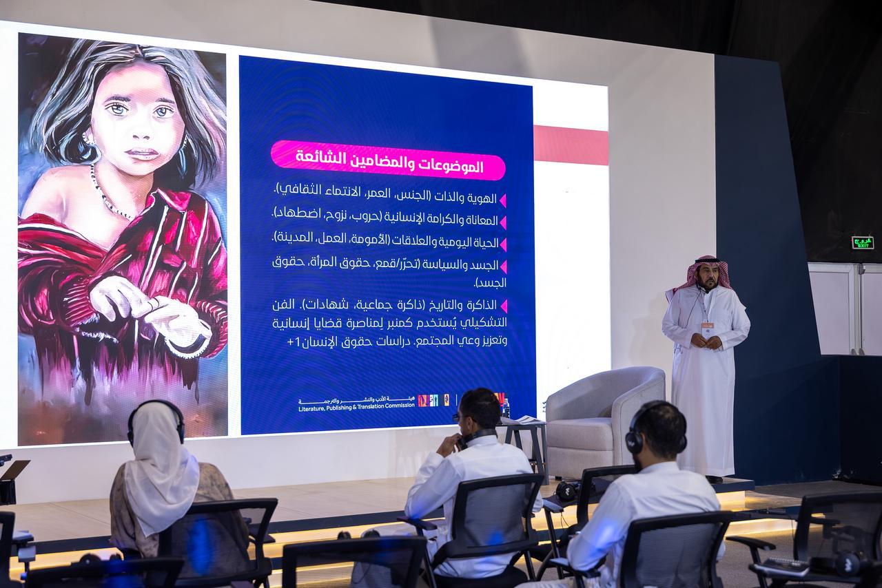 نظّم البرنامج الثَّقافيُّ لمعرض الرّياض الدّولي للكتاب 2025 ورشةَ عملٍ بعنوان “بحثٌ موسَّع في الفنِّ الإنسانيّ”، قدَّمها الأستاذ سليمان السحيباني، بحضور عددٍ من الفنَّانين التَّشكيليّين والمهتمِّين بالفنون البصريَّة والطُّلاب المتخصِّصين في مجالات الفنِّ والتَّصميم.